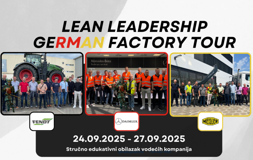 (24.09.2025. – 27.09.2025.) S velikim zadovoljstvom Vas pozivamo da iskoristite zatišje prije nego krene “špica” u proizvodnji i pridružite nam se na jedinstvenom putovanju i edukaciji – Lean Leadership German Factory Tour. Ovo ekskluzivno putovanje, namijenjeno proizvodnim kompanijama, pruža izvanrednu...
